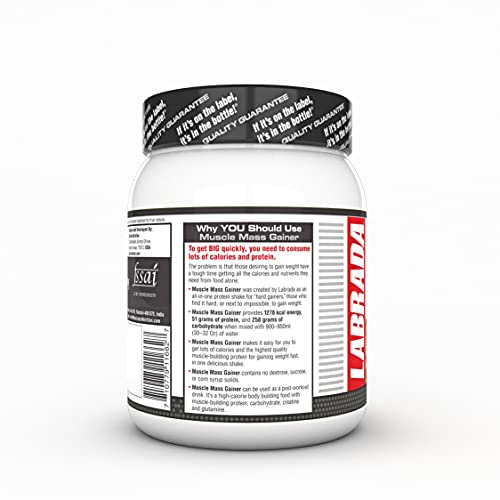 Specification: Labrada Muscle Mass Gainer Powder (Post-Workout, 1278 kcal, 51g Protein, 258g Carbs, 1g Creatine, 500mg L-Glutamine) – 2…