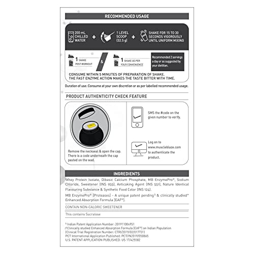 Specification: MuscleBlaze Biozyme Iso-Zero, Zero Carb, 100% Pure Whey Protein Isolate with USA Patent-Published Enhanced Absorption…